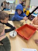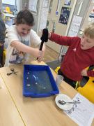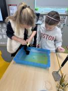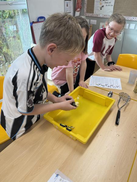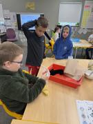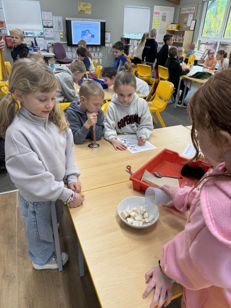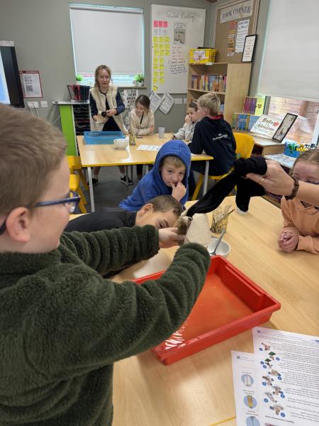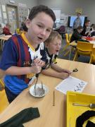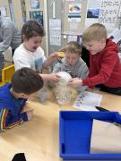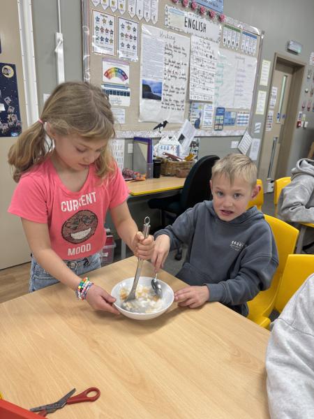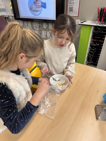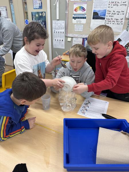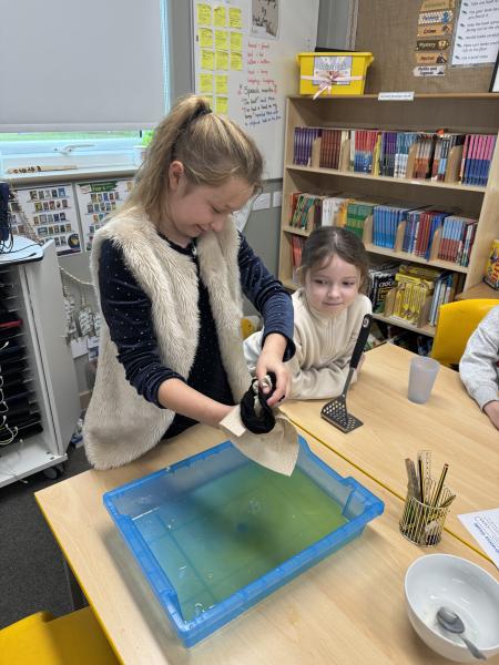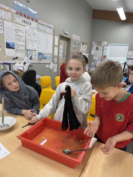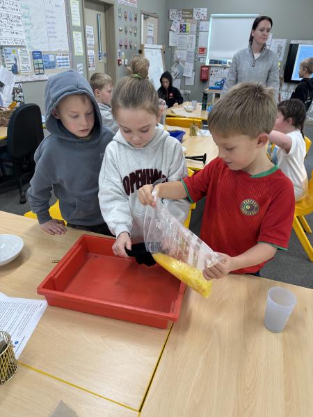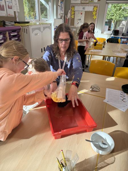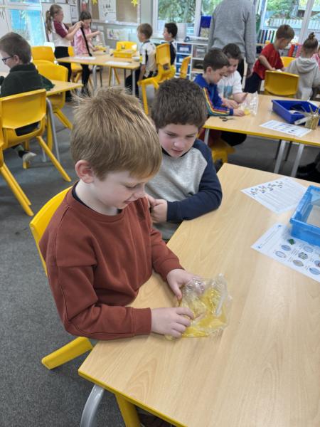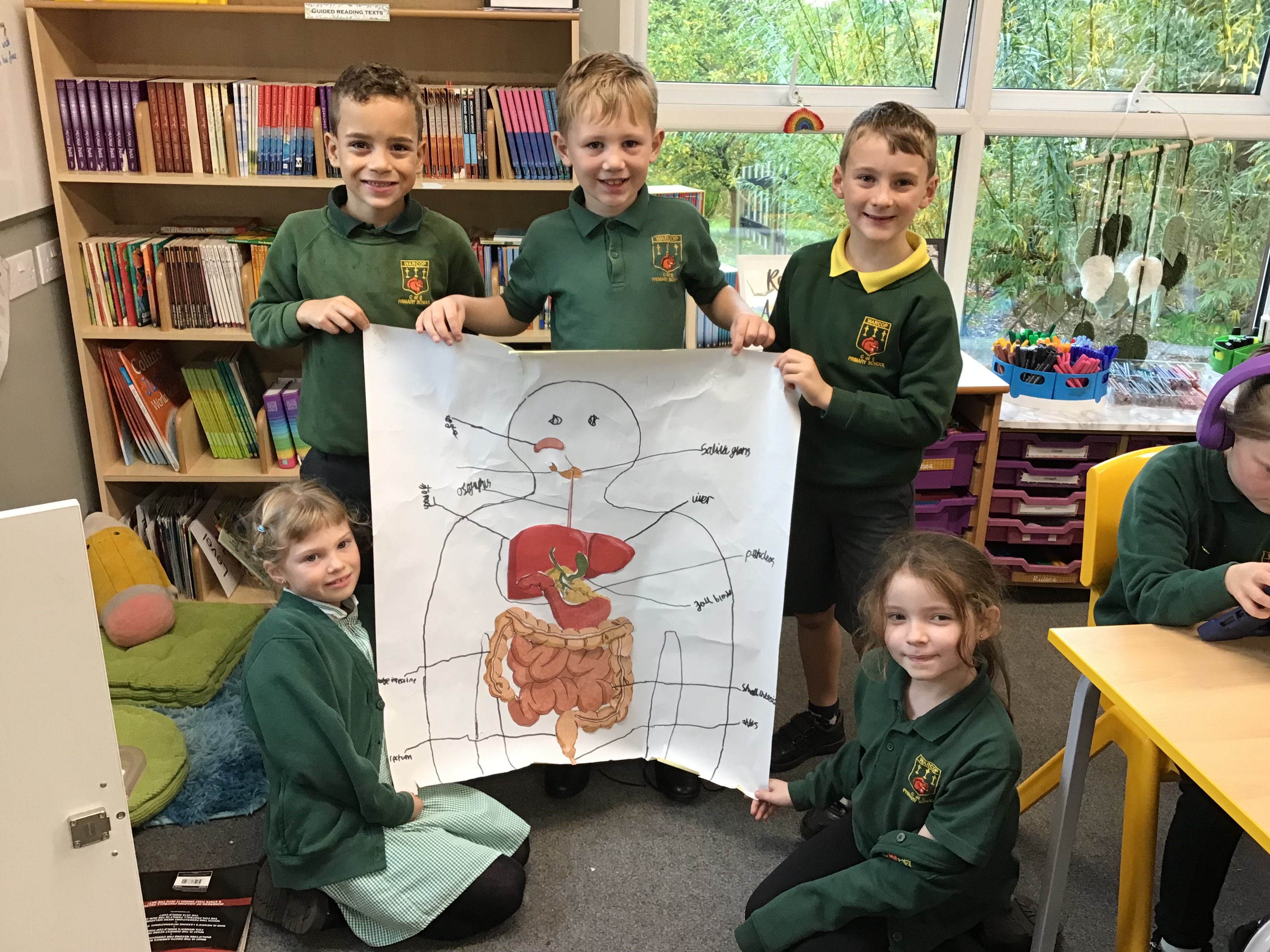 In Science we have been learning about eating and digestion. In the first lesson, we created our own digestive system on the human body in small groups. In the next lesson, we created the digestion process using bread as food, orange juice as acids, the bag as a stomach and tights as the intestines.